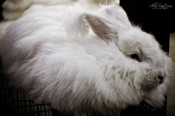 Fotos: gesundes Angorakaninchen (Alex Santosa), Angorapullover (Anny Blatt)
