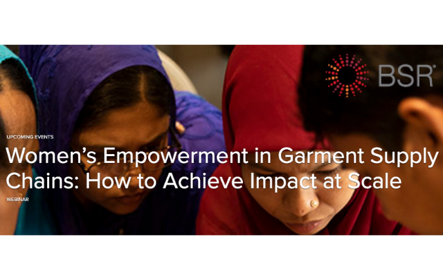 - WEBINAR by BSR: Women’s Empowerment in Garment Supply Chains: How to Achieve Impact at Scale